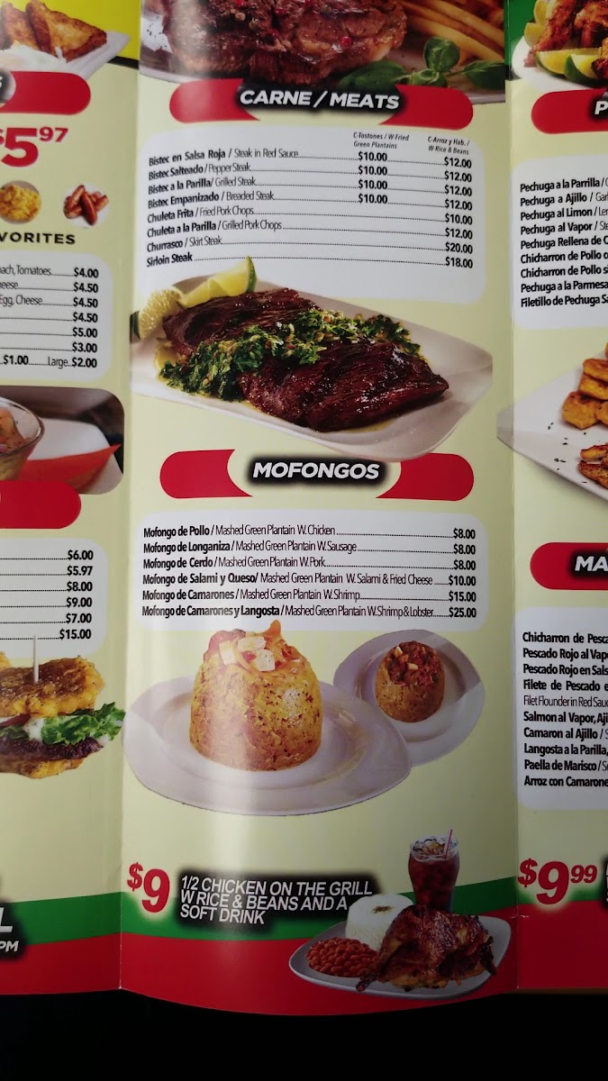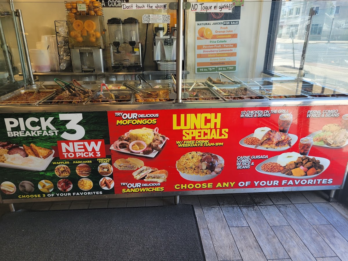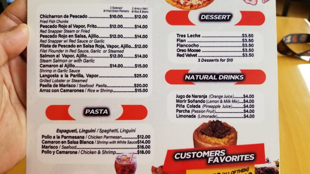 Beverages range from cooling sodas like merengue and classic lemonades to frozen tropical choices, complementing the bold and nuanced tastes of the dishes. These drinks are ideal for unwinding and adding a touch of island-inspired ease to your meal.